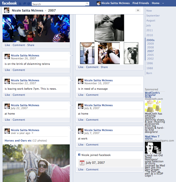 One of the cool things I didn’t talk about though was the hilarity of rediscovering your early posts through Timeline. You remember when the status header always had “Nicole is…”? Which was quite limiting if you were fussy about your grammar (not that I was or am, as you can probably tell). Anyway when I saw these scintillating updates I couldn’t stop laughing. My excuse is Social Media was so in its infancy and we didn’t really know what we were doing, ok so maybe some of you did, but as you can see by the below I had no idea!