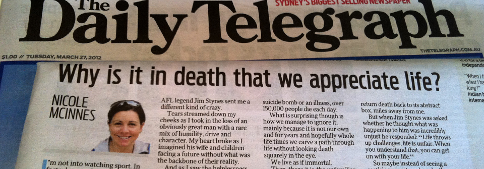 The Daily Telegraph, March, 2012: Why is it in death that we appreciate life?